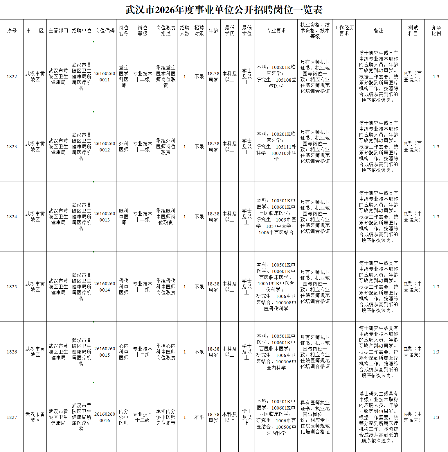 武汉市黄陂区中医医院 2026 年编制人员招聘公告