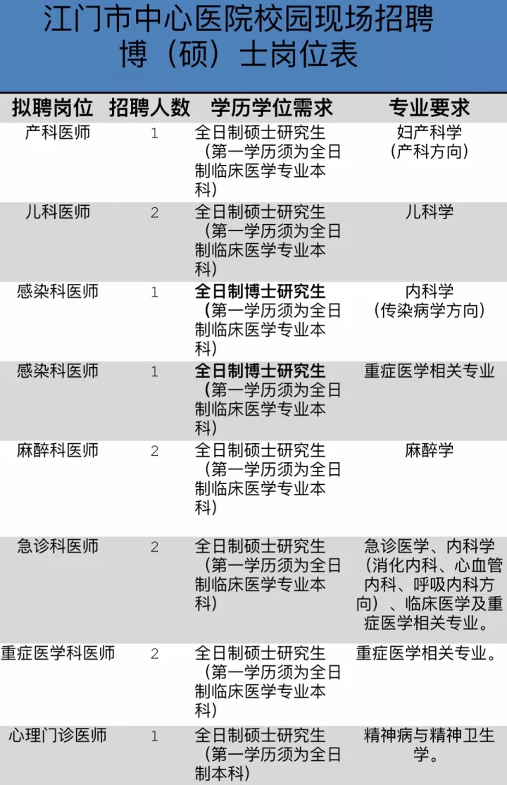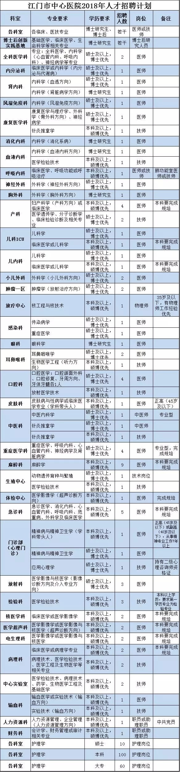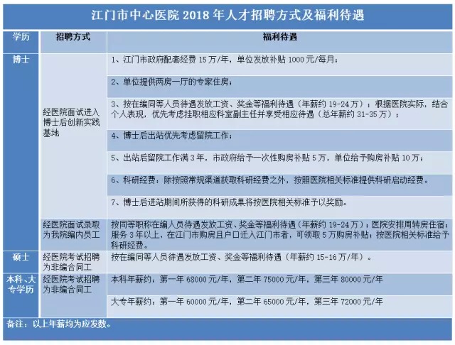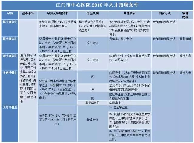 广东省江门市中心医院 2018 年人才招聘计划