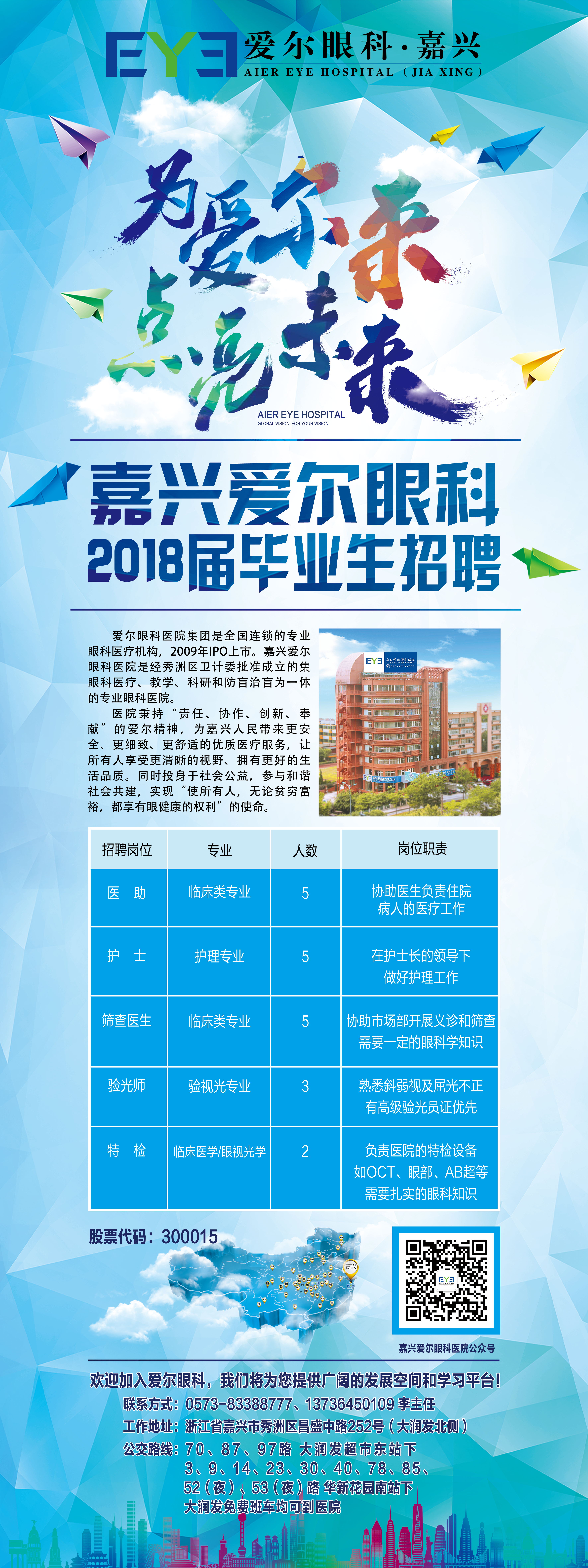 现嘉兴爱尔眼科医院诚聘2018届毕业生: