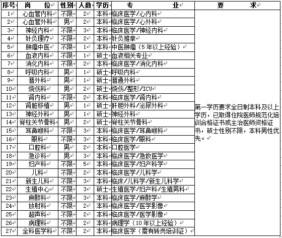 护士要求有临床护理工作经验,应届毕业生需在三级甲等医院实习 8 个月以上,往届毕业生有护士执业资格证书和二甲以上医院工作经历一年。年龄 28 岁以下,生育过孩子者年龄可放宽到 35 岁。男性身高 168 cm 以上,女性身高 160 cm 以上。