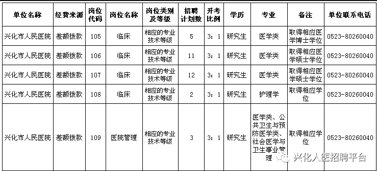 咨询电话:0523—83235294(兴化市卫健委) 83228870(兴化市人社局)