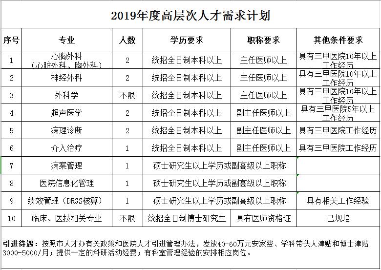 4. 符合上述条件的人才,医院长期招聘,2019 年急需岗位招聘计划见附表。
