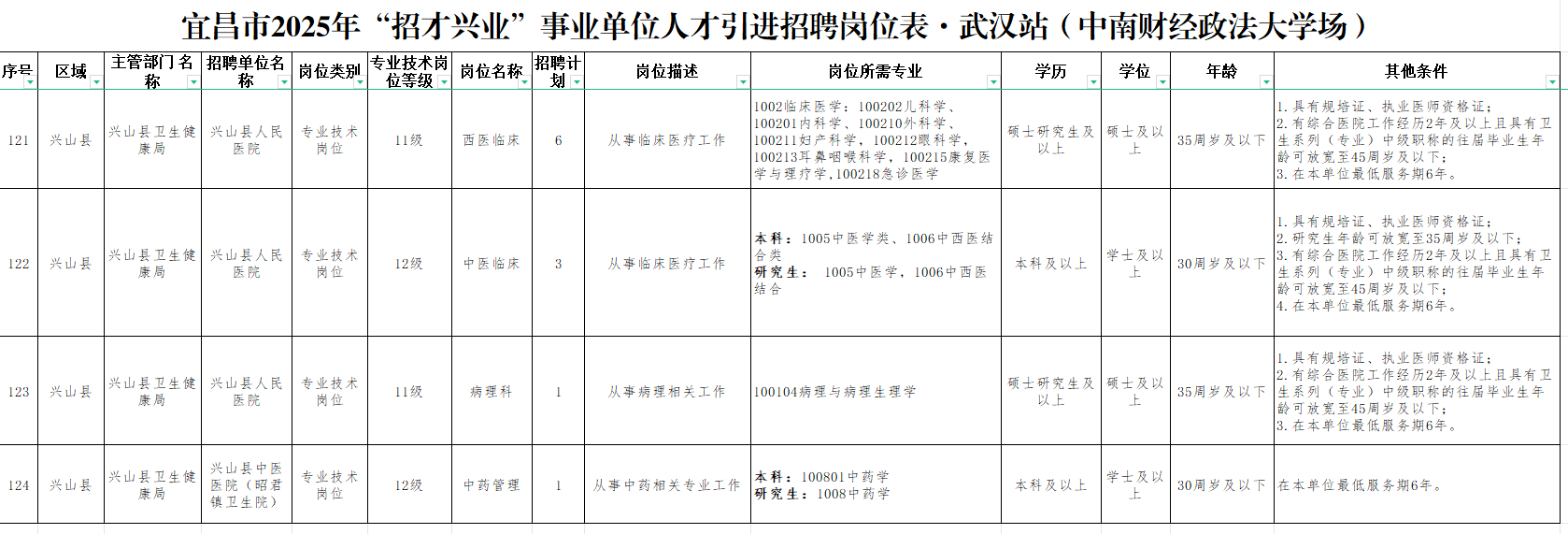 兴山县计划招聘34人--宜昌市“招才兴业”事业单位人才引进公告