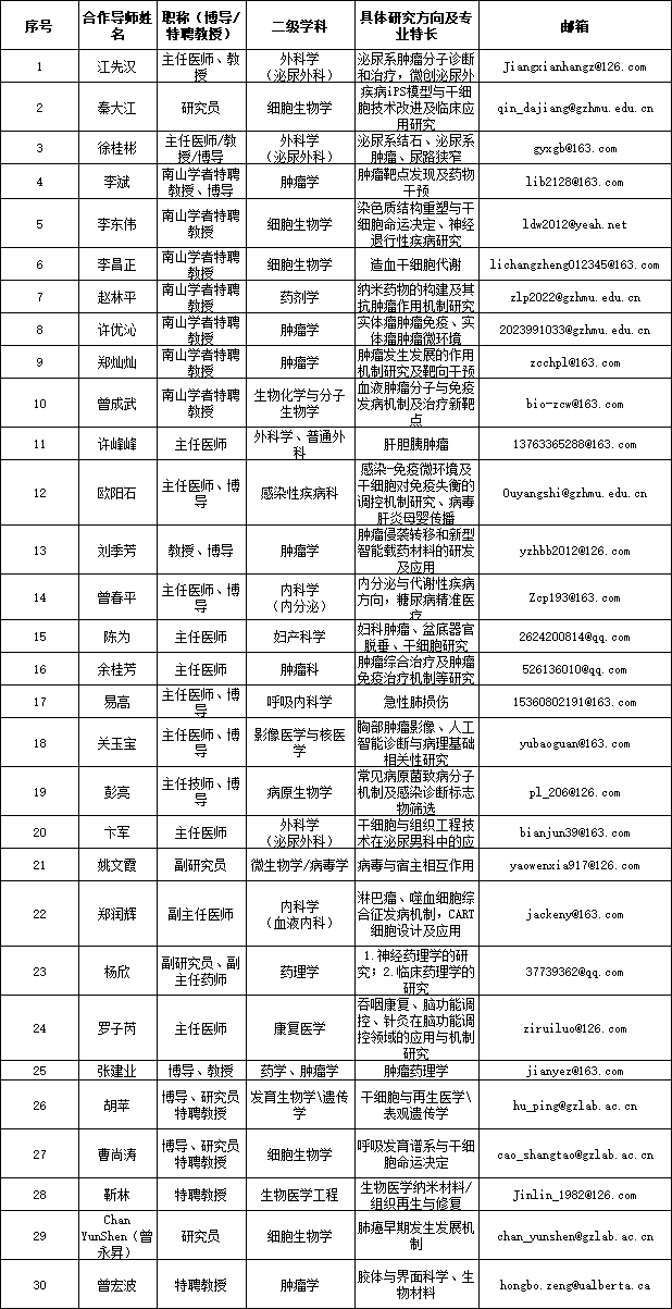 (4)学科方向:重点引进临床医学(呼吸病学、重症医学、感染病学、变态反应学、胸外科学、泌尿外科学、神经病学、精神病学、妇产科学、儿科学、肿瘤学、心血管病学、康复医学、急诊医学)、基础医学、药学、公共卫生与预防医学、生物医学工程、生物学领域海外优秀青年人才;兼顾引进中西医结合、护理学、口腔医学、医学技术、心理学、中医学及其交叉领域学科等海外优秀青年人才;