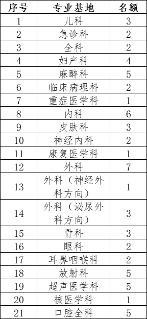四、拟招录专业及名额(以下名额为最低招生名额,以医院最终录取为准)