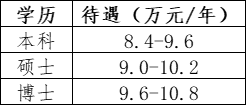 3. 年度绩效:按照不同学历、不同年级发放标准:本科 8000 元-10000 元;硕士 11000 元-13000 元;博士 14000 元-16000 元;按实际考核情况发放。