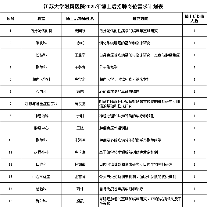 应聘者可通过丁香人才网投递简历(博士后简历投递入口) 或直接将个人简历(简历务必备注博士后应聘)发送至电子邮箱 jdfyzp@163.com。