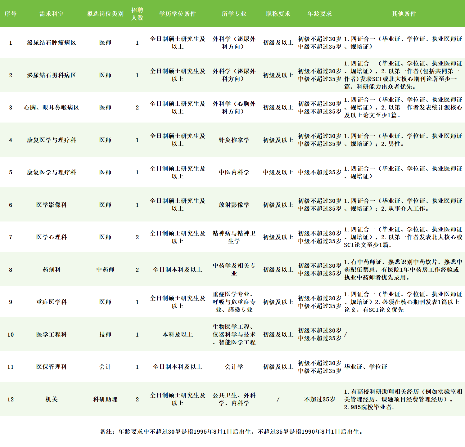 (四)年龄要求:不超过 30 岁是指 1995 年 8 月 1 日后出生;不超过 35 岁是指 1990 年 8 月 1 日后出生。