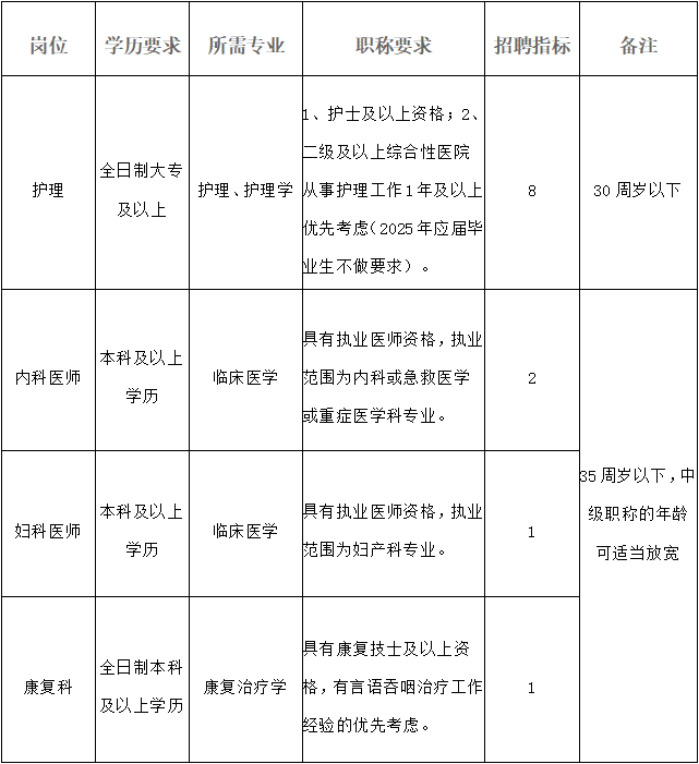 本次招聘采用公开报名、资格审查、面试(护理岗加试操作考试)、试岗、体检、考察等程序进行,择优录用。