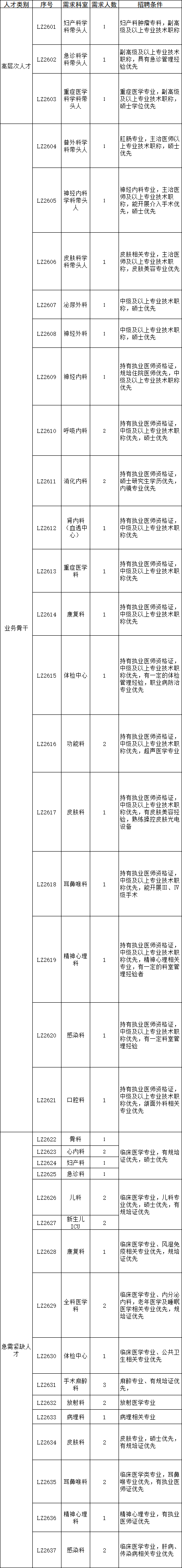 本次计划招聘医生50名(高层次人才3名、业务骨干21名、急需紧缺人才26名)。