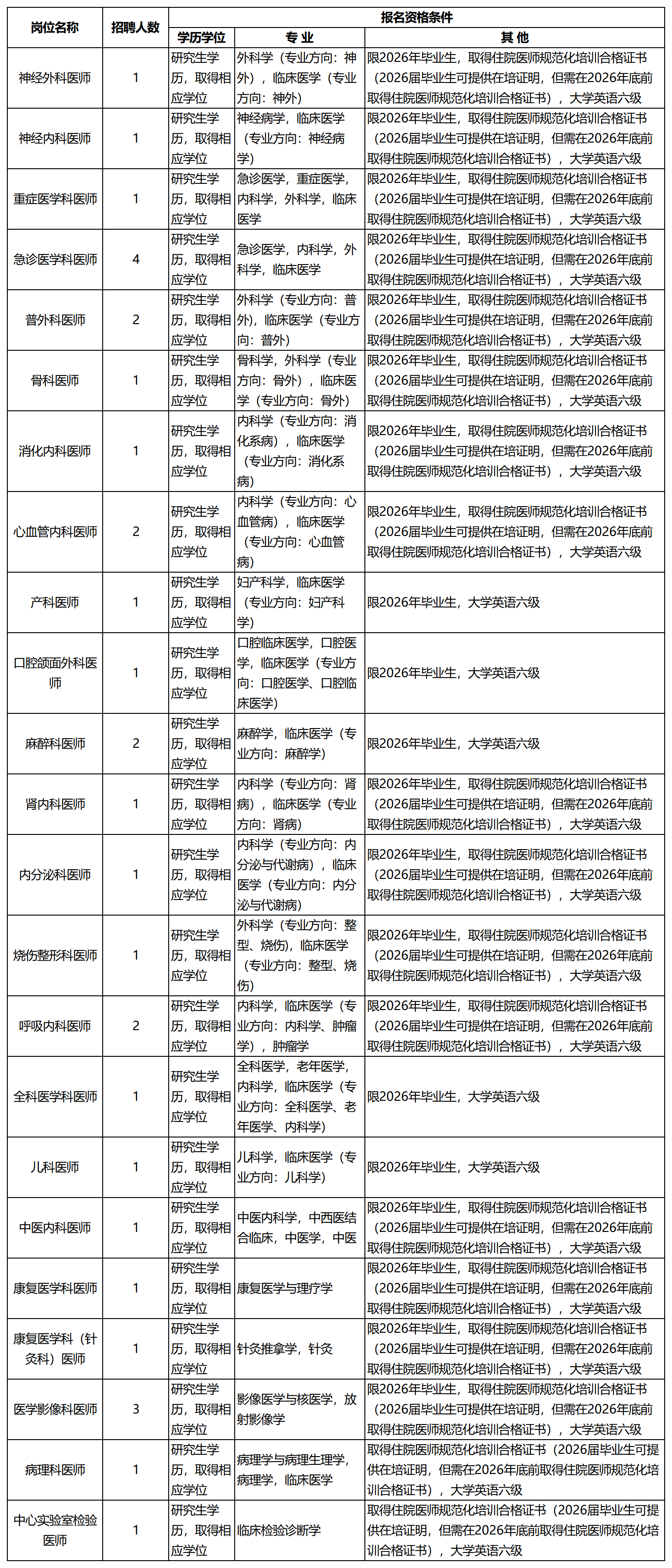 2.2026届毕业生未在规定时间取得招聘岗位所要求的学历、学位证书、住院医师规范化培训合格证书的。