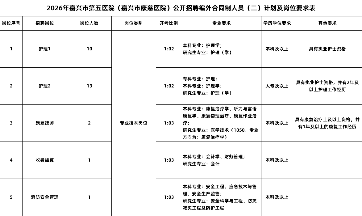 2026年嘉兴市第五医院公开招聘编外合同制人员公告(二)