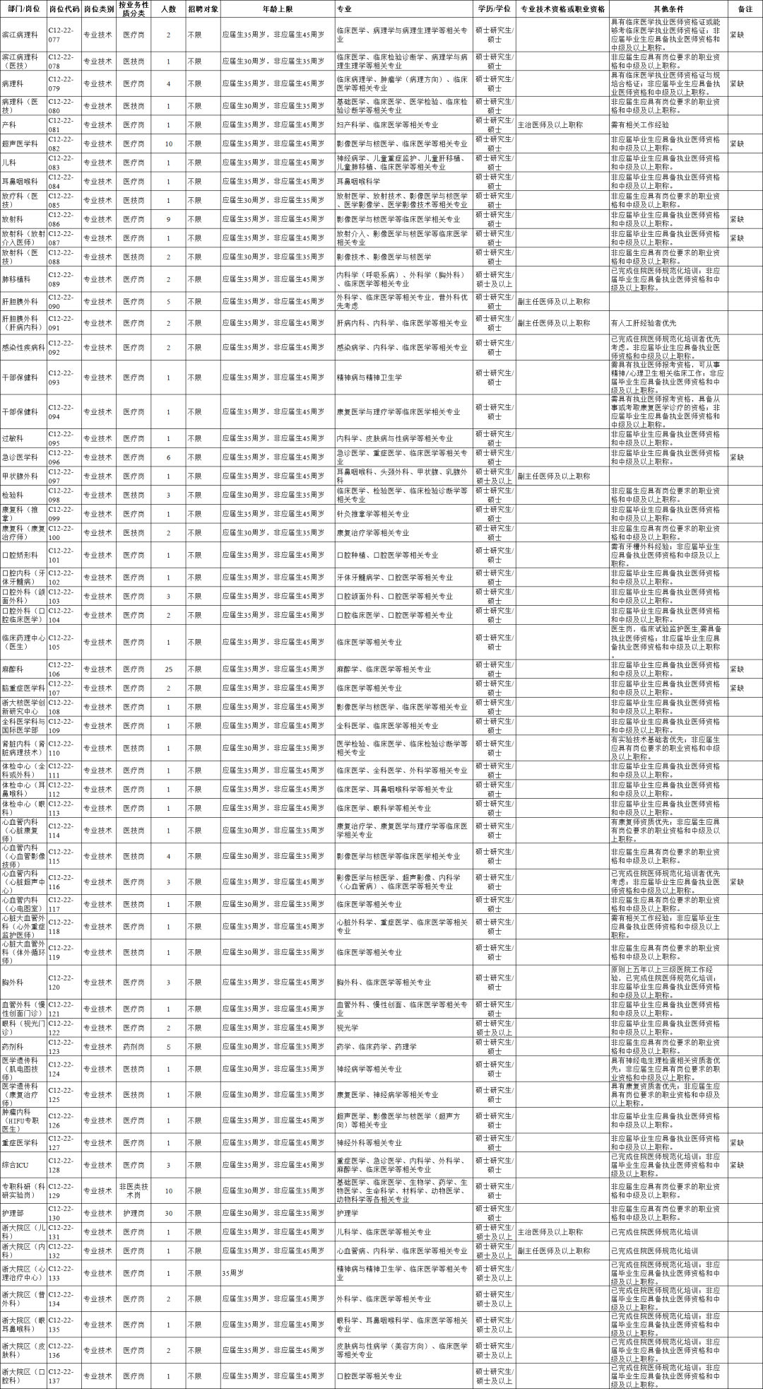 >> 浙江大学医学院附属第二医院招聘岗位及要求