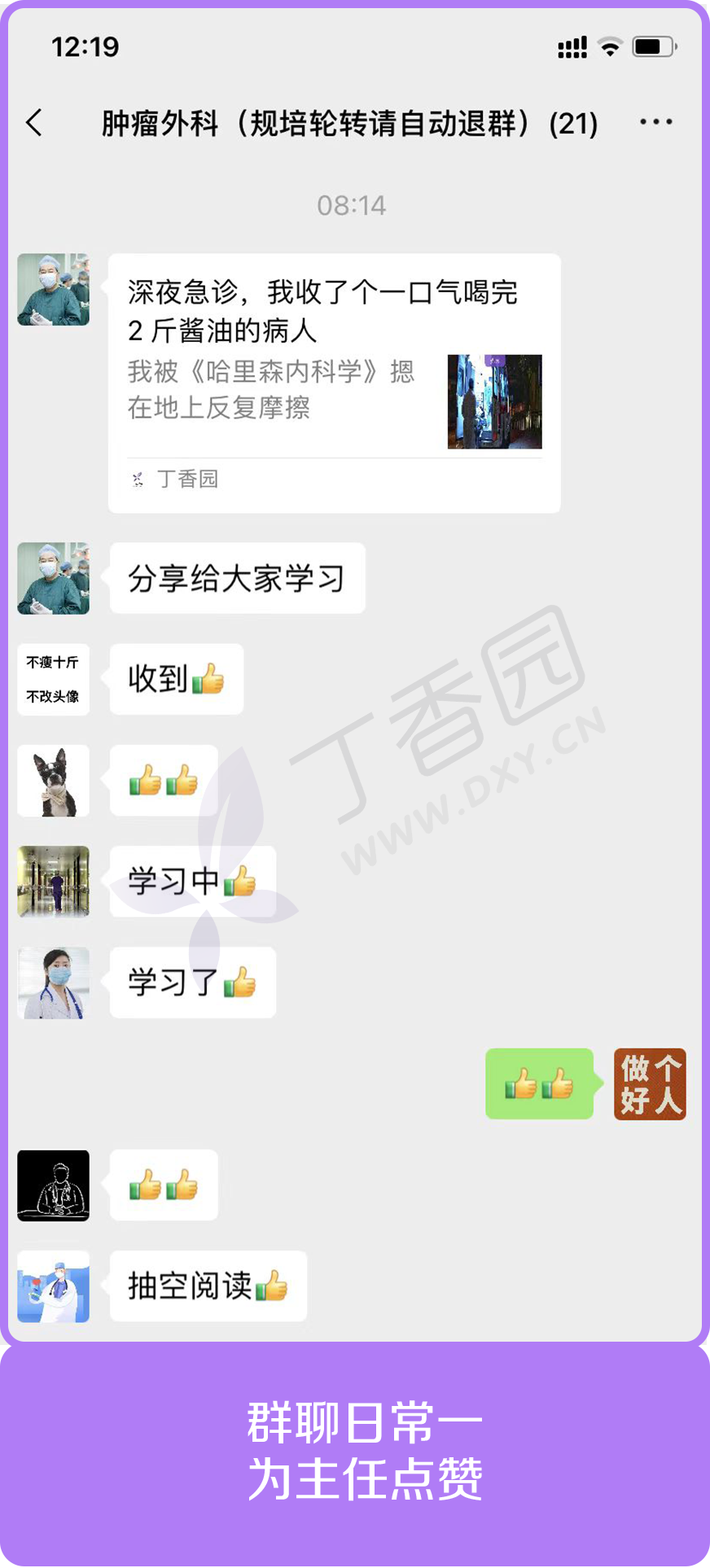 公众号阅读习惯:标星 「丁香园」,平均每天点赞 2 次,点击在看 3 次,分享 2 次(看到这里,您不禁又……)