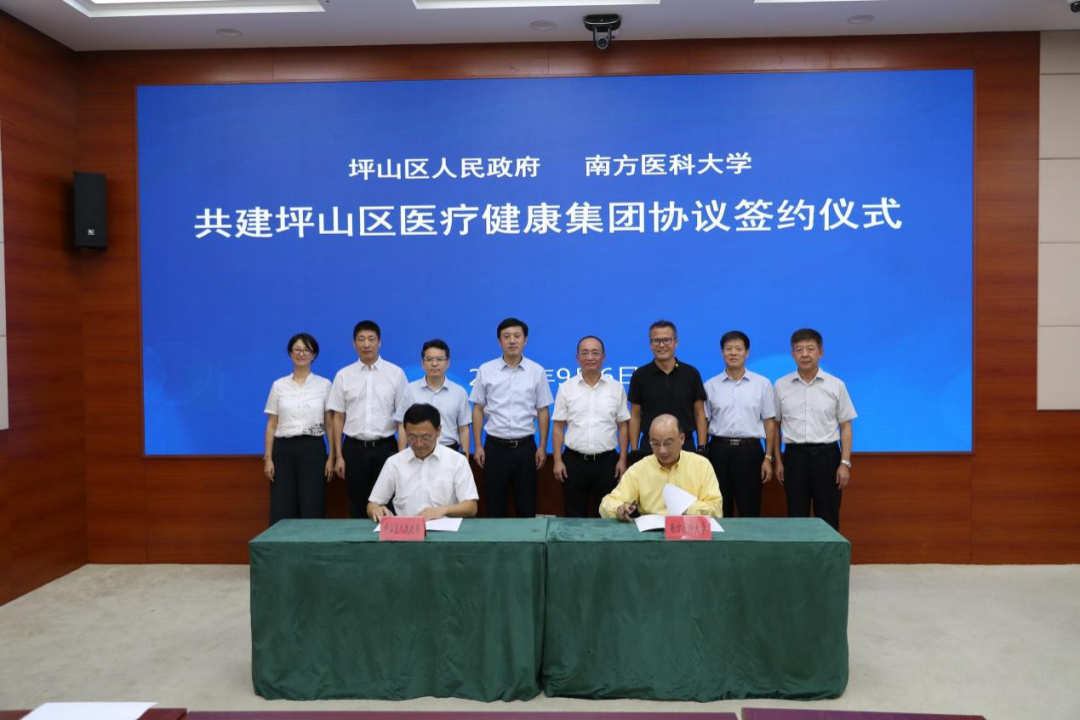 南方医科大学坪山总医院(深圳市坪山区医疗健康集团)由深圳市坪山区政府与南方医科大学共同举办、合作共建,2019 年 9 月成立,为南方医科大学直属附属医院。总院统筹管理深圳市坪山区人民医院、坪山区妇幼保健院和区域内 28 家公办社康中心。总院以建设深圳东部区域医疗高地为目标,依托南方医科大学雄厚的学科人才实力,大力提升人才队伍层次和水平,加快基础设施建设,构建医教研协同高质量发展新格局,强力推动所属医院从区级医院向高等院校直属三甲医院蜕变。