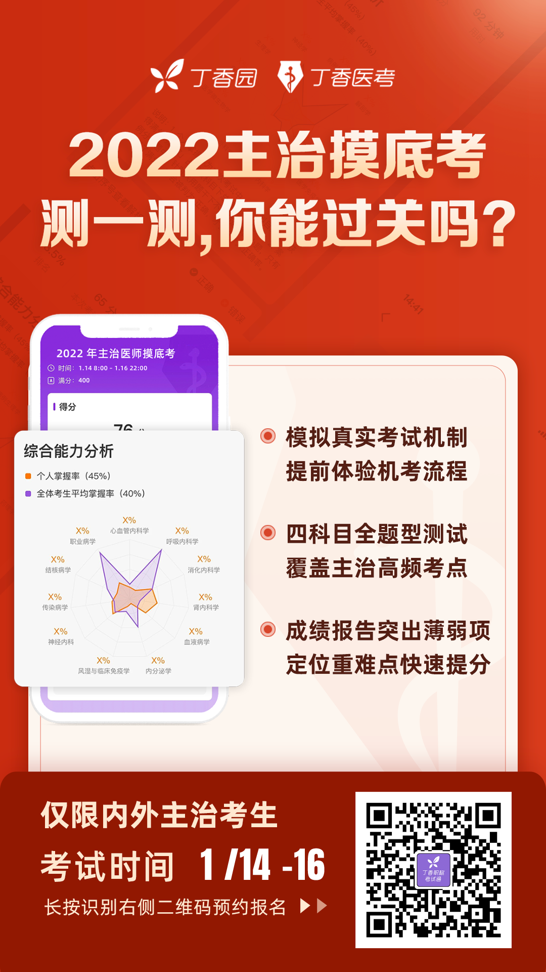 距离 22 主治考试还有不到 90 天了,大家复习的怎么样了? 一次考过的把握有多大? 为了让大家考前心里有底, 丁香医考正式上线 :