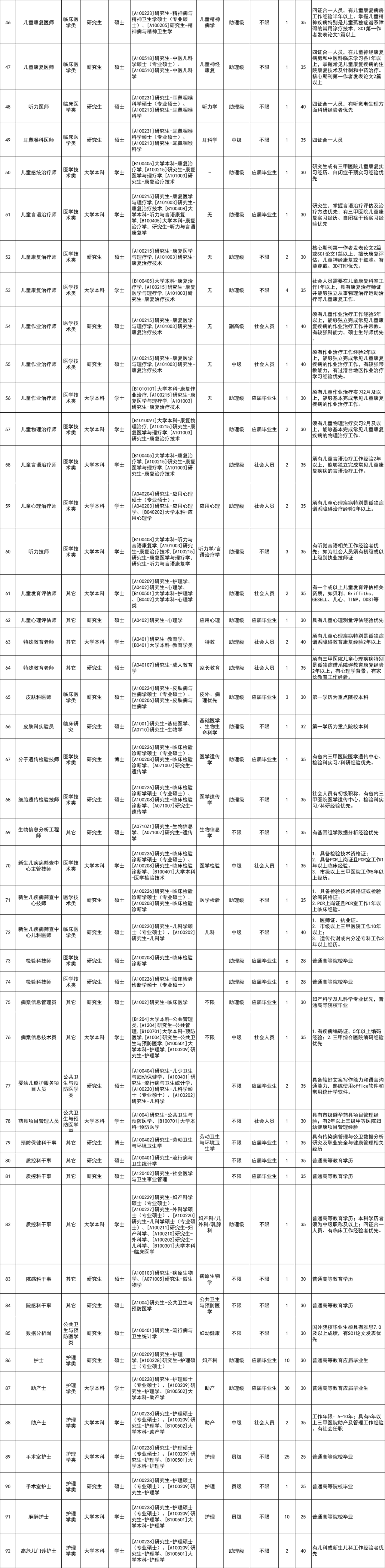 2、管理岗位、医技岗位、护理岗位及其它专业技术岗位:全日制硕士及以上学历人员。