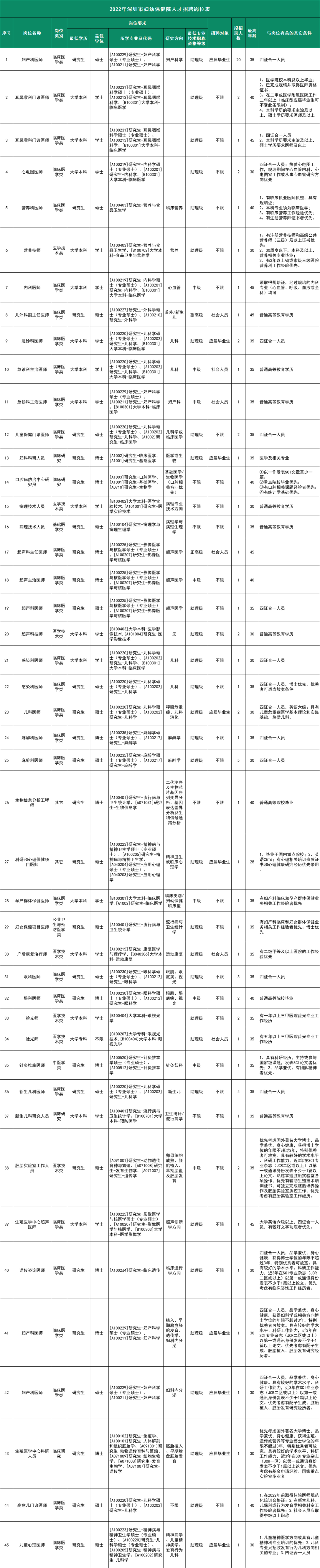 点击下载查看岗位详细信息>>深圳市妇幼保健院2022年人才招聘岗位表.xls