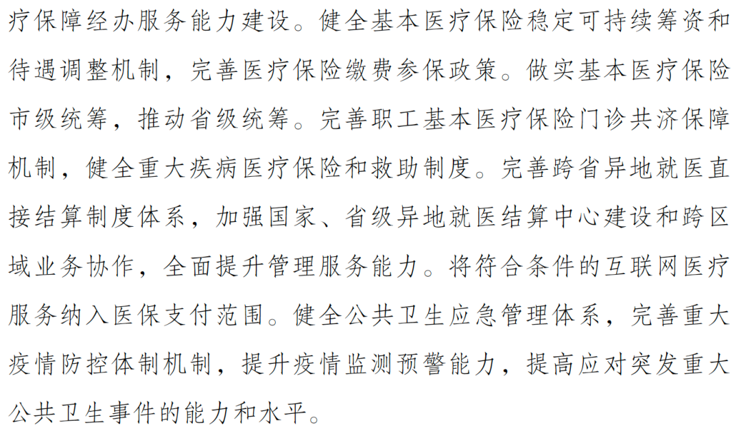 规培的完善、医保制度的统筹和异地结算、疫情防控体系的完善也在《规划》中被提及。