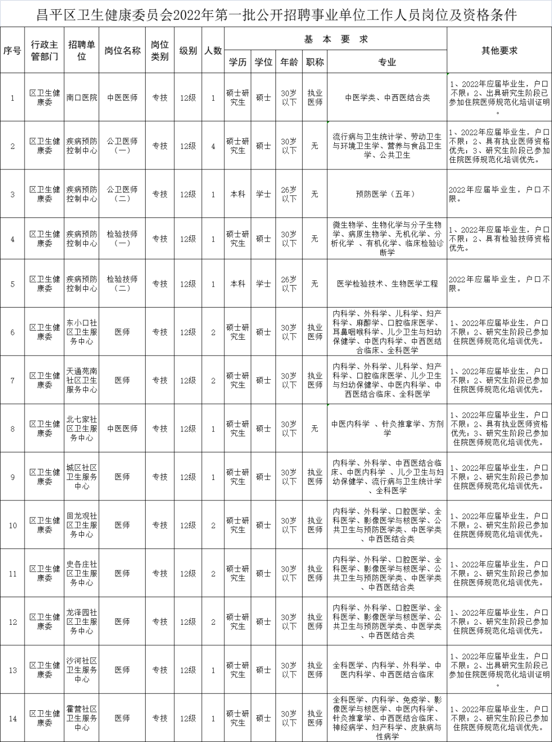>> 昌平区卫生健康委员会招聘岗位及要求
