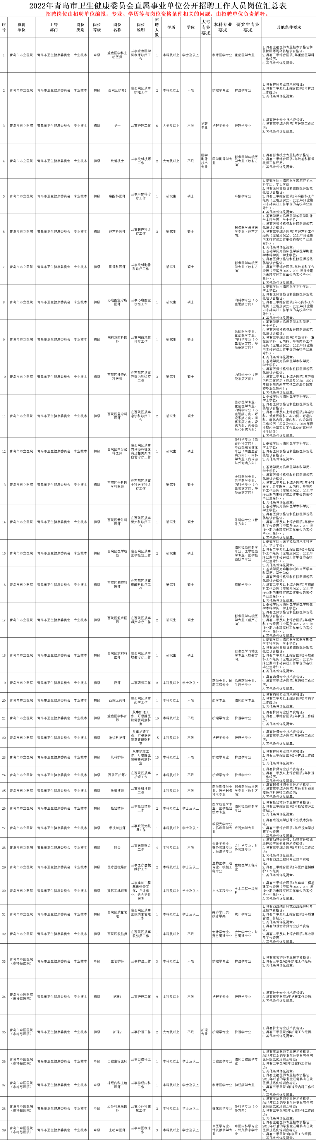 >> 青岛市卫生健康委员会直属事业单位招聘岗位及要求