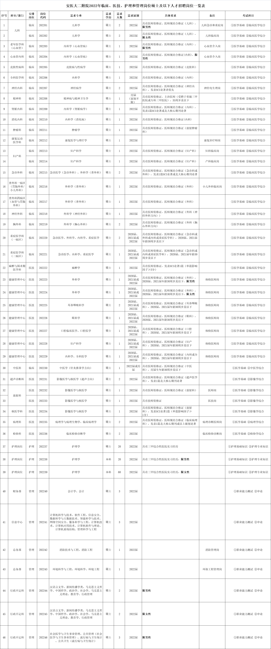 >> 安徽医科大学第二附属医院招聘岗位及要求