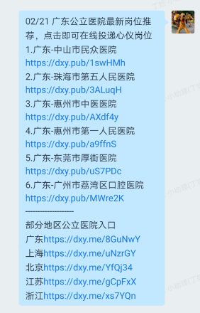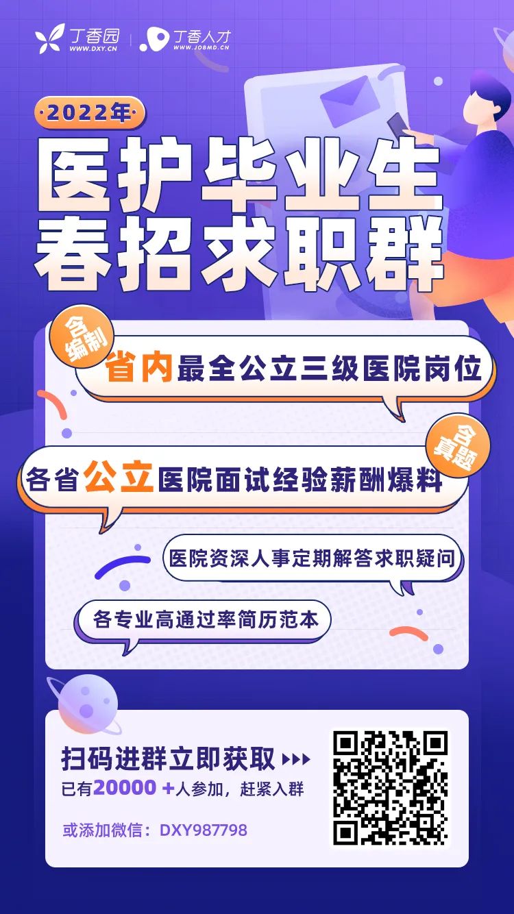 作为专业的医疗招聘平台,为了避免大家漏掉关键信息,丁香人才每年都会组建各省份医护春招求职群,提供省内最全的招聘信息。