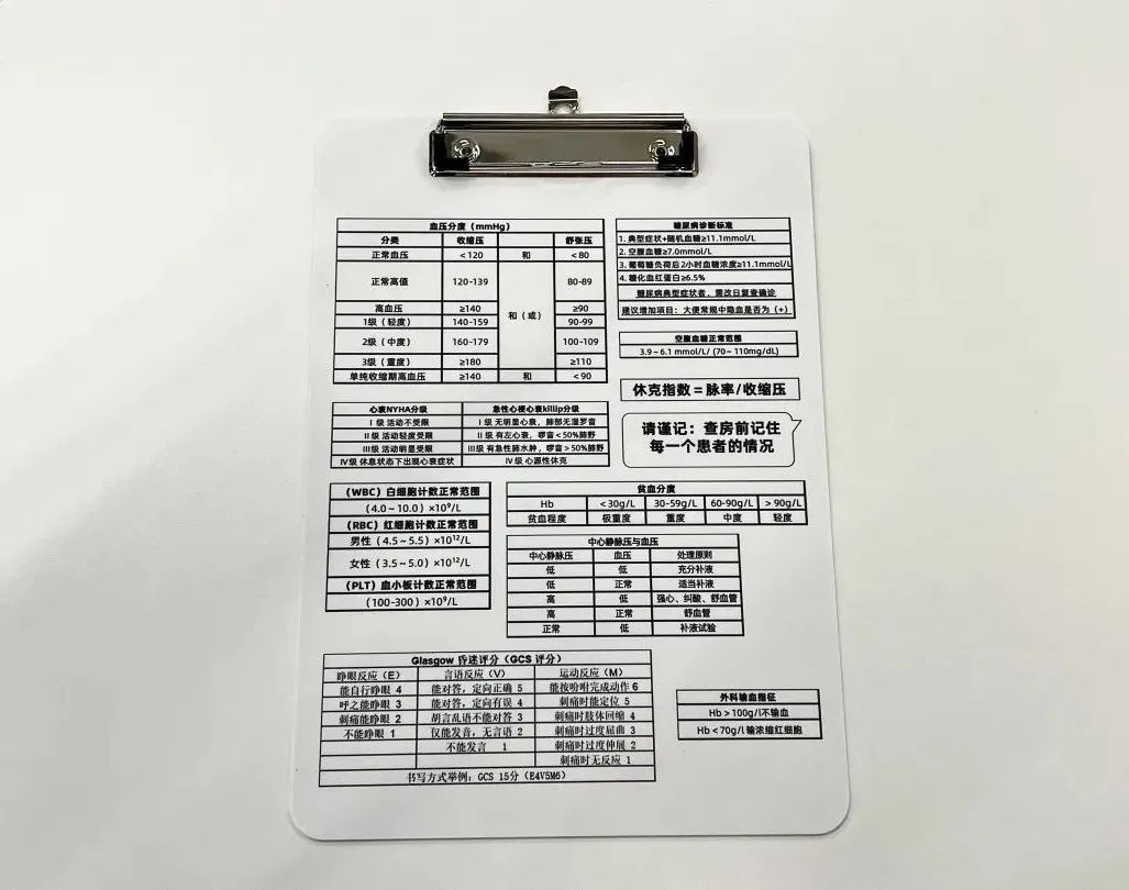 于是我们定制了一批「查房神器」,血压分度、糖尿病诊断标准、GCS 评分......统统都有。