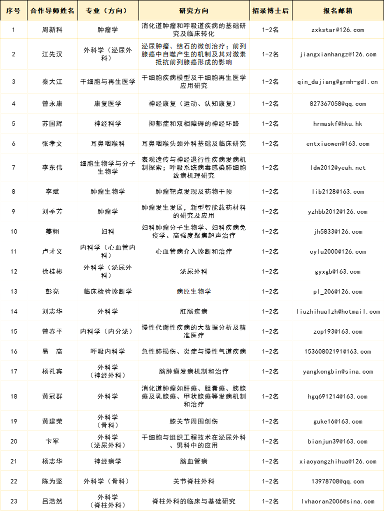 博士后研究人员可发简历至报名邮箱直接联系导师报名。