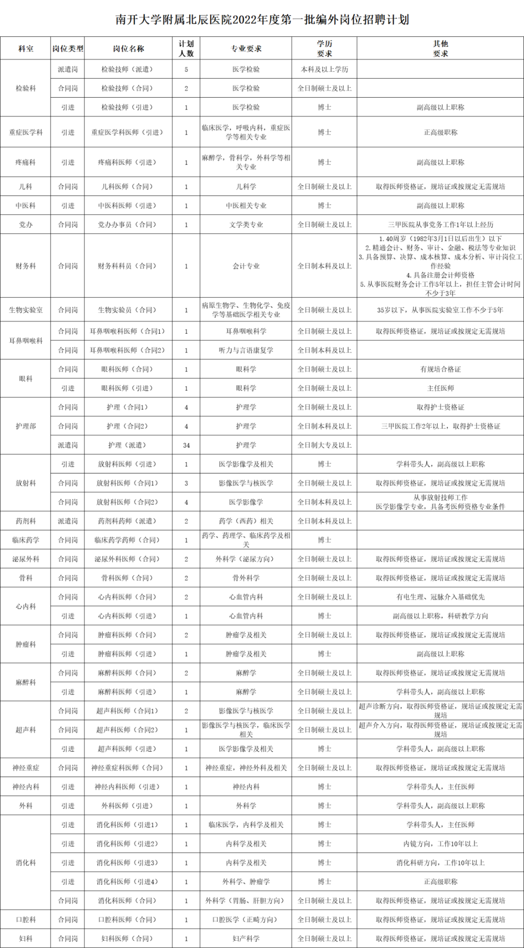 1. 天津市天津医院 推荐理由:公立三甲,经验不限,五险一金,本科起投 在招岗位:输血科/泌尿外科/妇产科/皮肤科等 点击查看 71 个在招岗位 >>