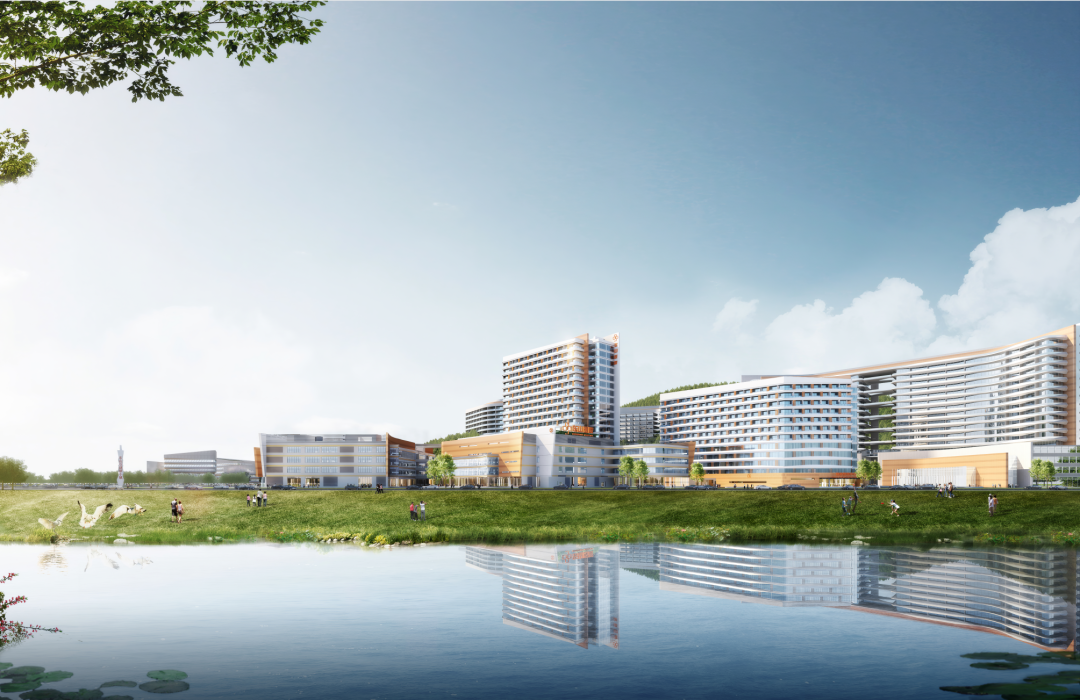 东山医院位于广东省梅州市中心城区,秀兰大桥往东 S223 线与芹洋东路交汇处,是广东省 2021 年的重点项目。医院规划用地总面积 20 万平方米,建筑总面积 52 万平方米,规划设置 3,100 张床位,总投资约 60 亿元。首期占地 10 万平方米,建筑面积 19 万平方米,开放 1,000 张床位,投资 20 亿元。