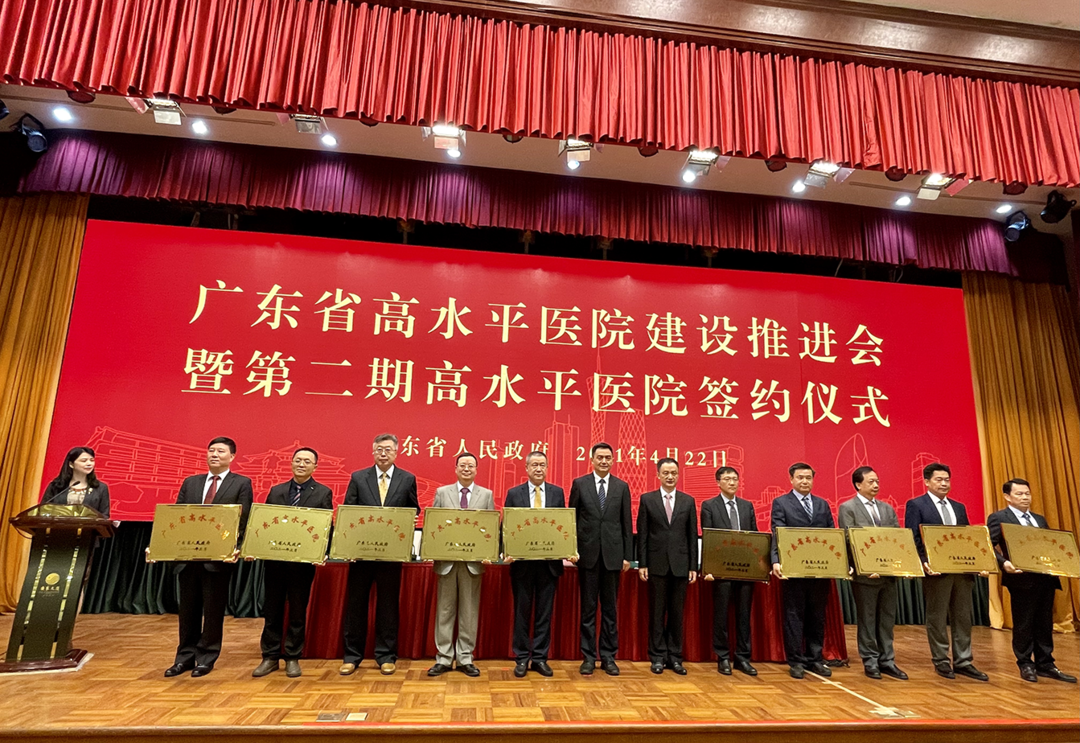 2021 年 4 月 22 日,广东省高水平医院建设推进会暨第二期高水平医院签约仪式在广州举行,我院获颁「广东省高水平医院」牌匾。