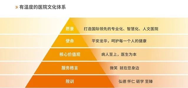医院以打造国际领先的专业化、智慧化、人文医院为目标,恪守弘德、怀仁、砺学、至臻的院训,坚守病人至上,医生为本的核心价值观,秉持「微笑就在您身边」的服务格言,践行「四心一满意」「六不一安全」的服务理念,为「健康中国」建设贡献力量。