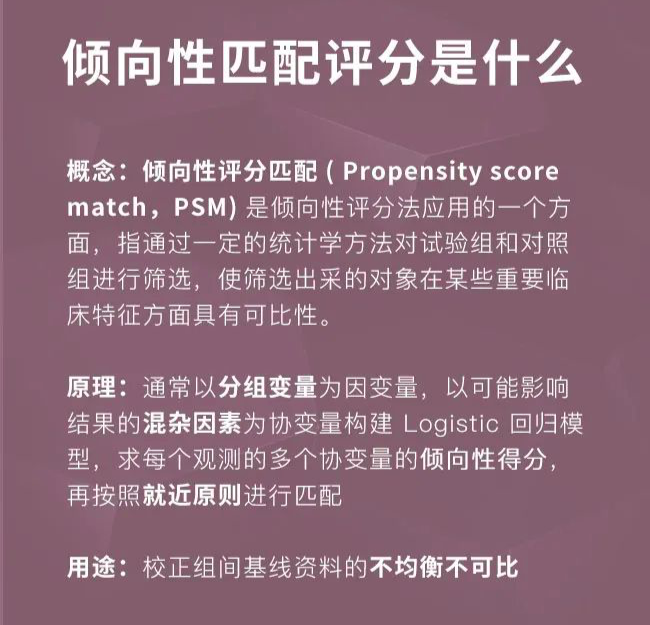 这时候,可以通过倾向性匹配评分 (PSM) 校准好基线后,再进行后续的分析,是目前回顾性文章中最常见的方法,也是目前 SCI 期刊比较认可的方法。