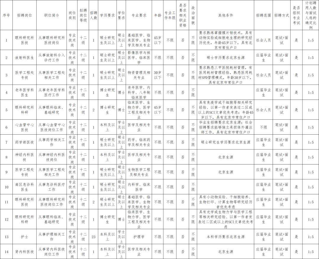 >> 首都医科大学附属北京同仁医院招聘岗位及要求