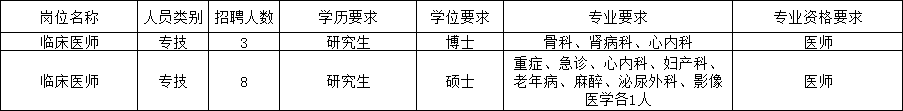二、医师招聘计划: