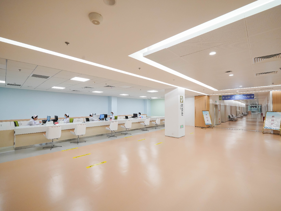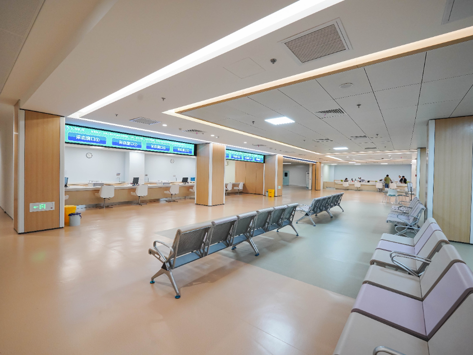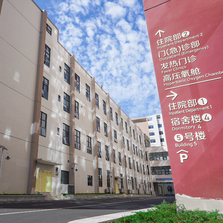 医院首期工程建筑按照现代医学人文与科技理念精心设计,总面积近 12 万平方米,包括功能齐全、设备(设施)完善的门(急)诊大楼,三个配置条件一流的住院病房大楼,一个高建设标准的独立感染病区大楼,一个为员工提供温馨、舒适生活环境的宿舍楼,打造了十分良好的医疗、康复和工作环境。