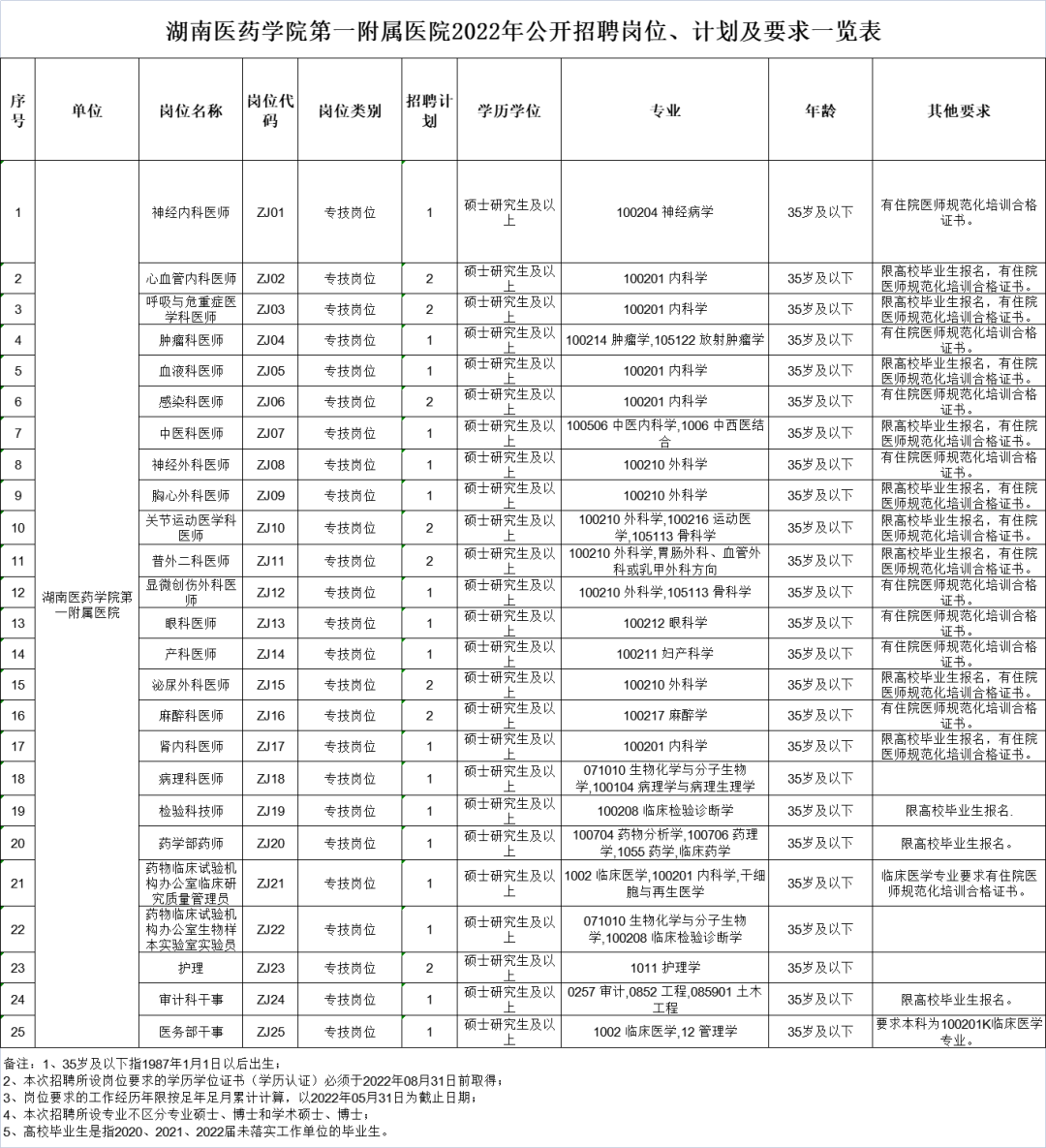 湖南 | 湖南医药学院第一附属医院招聘公告