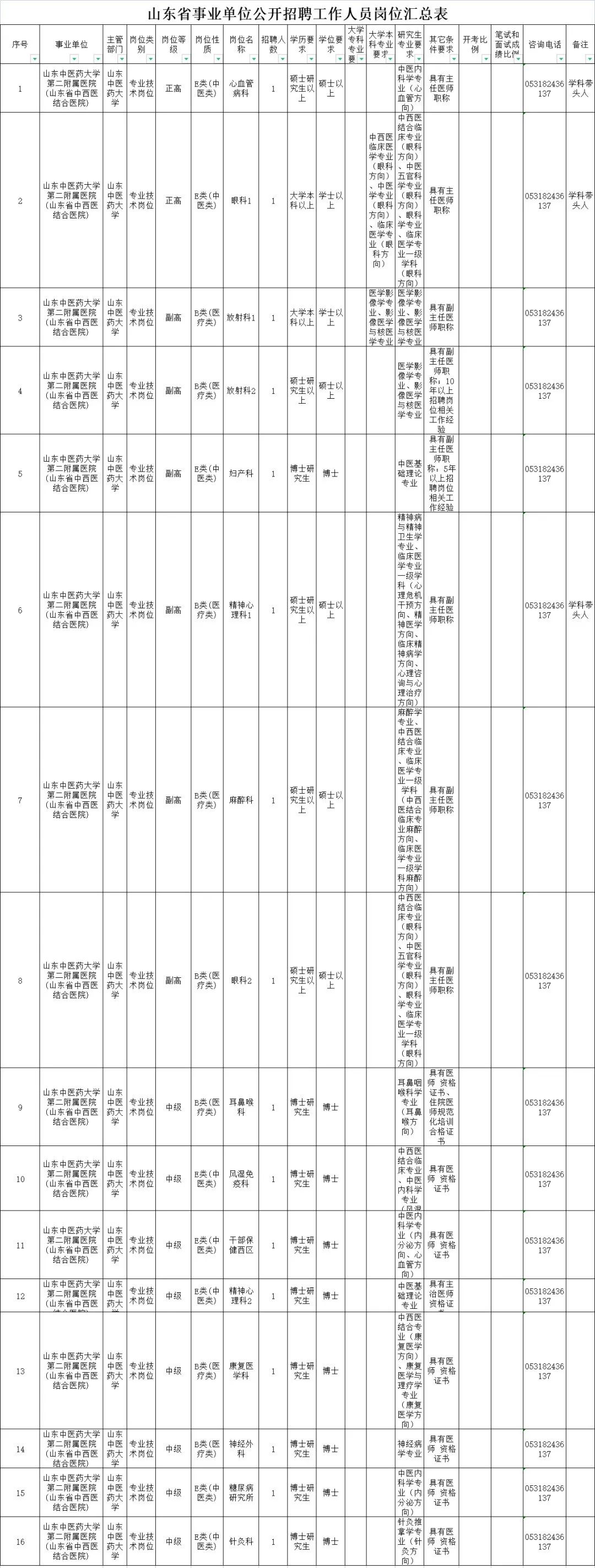 1. 山东第一医科大学第二附属医院 推荐理由:公立三甲,经验不限,安家费,科研经费 在招岗位: 眼科/检验科/超声科/皮肤科等