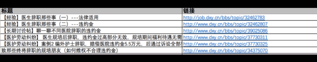 按医院名称、合同内违约金规定以及辞职时实际赔付情况来整理,另附园子里与违约金相关的纠纷处理经验帖汇总供参考