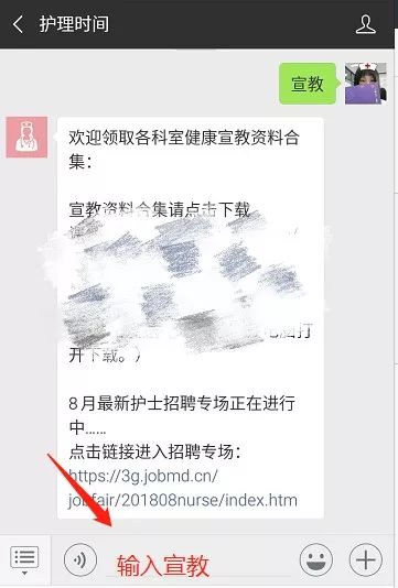 2.关注后,在「护理时间」公众号内,发送「宣教」,即可获得宣教合集下载链接。