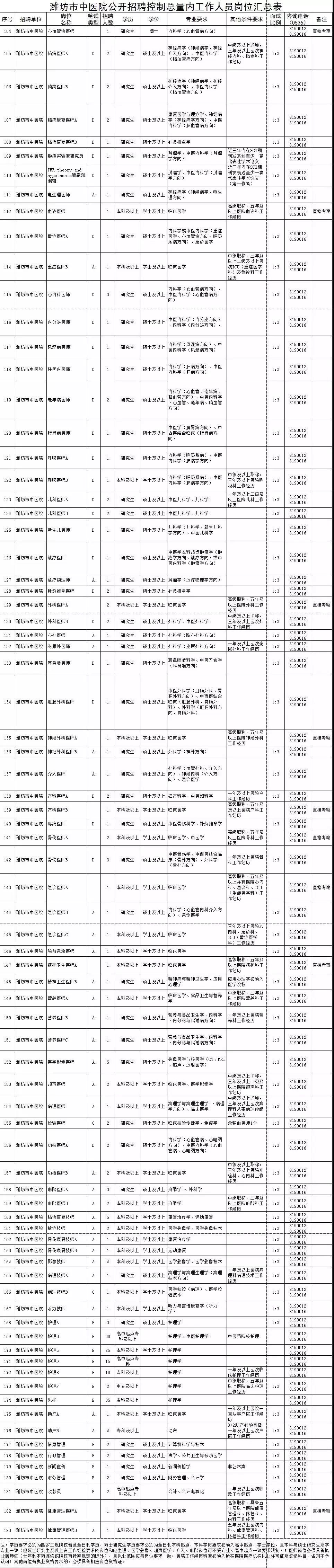 潍坊市中医院是一所集医疗、教学、科研和预防保健为一体的综合性大型三级甲等中医院,按照《事业单位人事管理条例》(国务院令第 652 号)等规定, 结合国务院、省、市公立医院改革精神,2018 年潍坊市卫生和计划生育委员会直属事业单位面向社会公开招聘工作人员。