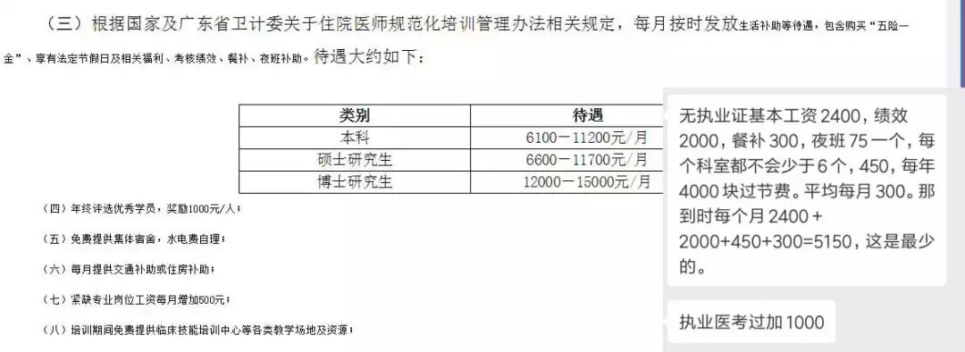 1.广东不是所有的医院规培收入都有上述表格的那么高。粤东、粤西、粤北一些相对偏远地区的规培收入是比较低的,本科无证第一年普遍 2K-4K 不等,广州这样的大城市,有些医院的规培每月也只能拿个 3、4K 而已,还不包吃住的。