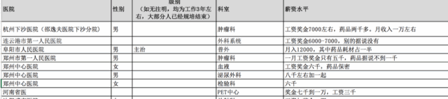全国 100+ 医院各科室的薪资待遇曝光汇总