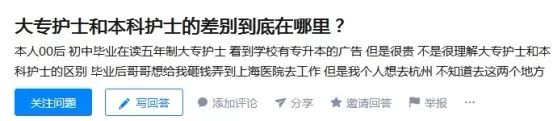 但不得不说,高学历护士已逐渐成为趋势,不仅是本科,硕士、博士研究生护士也大有人在。护士绝不仅仅是打针发药的职业,会越来越专业化,门槛越来越高。大专护士考本科,本科考研究生,在高平台是必然的选择。