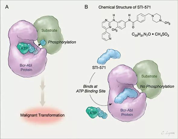 简单地说,格列卫的作用机制就是取代 ATP,从而直接掐断白血病细胞的增殖恶变