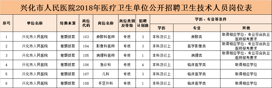 江苏兴化市人民医院 2018 年公开招聘紧缺卫生技术人员公告