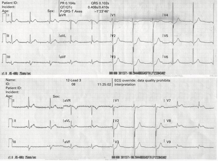 看个病例,72 岁女性,间断胸痛 3 天,持续 4 小时不缓解入院。结合下方心电图,请思考。