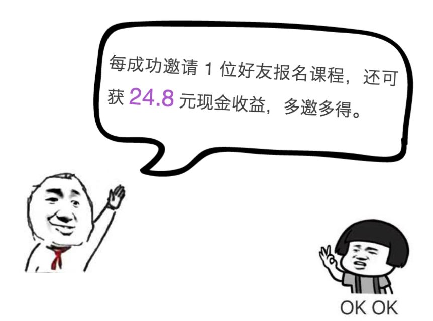福利 3:每邀请一位好友报名学习,还能赚 24.8 元现金奖励,多邀多得。
