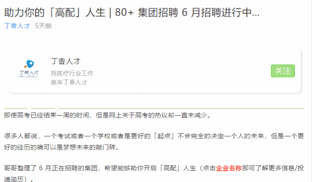 上次反响很好,于是丁香哥哥为大家整理 6 月 18 日-6 月 22 日发布最新招聘信息(绝对一手资讯)~点击企业名称即可投递简历。